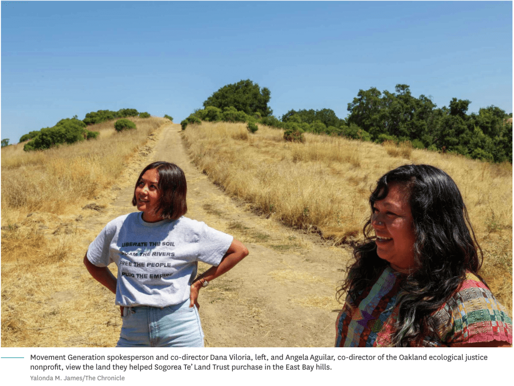 See “‘It’s transformative’: Bay Area nonprofit returns 43 acres to female-led Indigenous land trust,” San Francisco Chronicle, July 25, 2023.