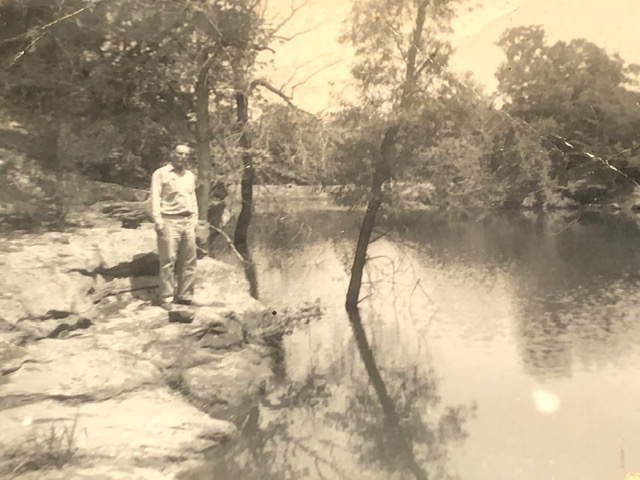 In light of Black Lives Matter, I have joined a group at my church, the Unitarian Universalist Church of Berkeley, to look into our relationship with indigenous people and the theft of Indian lands. That is something I can speak to. I am a few generations away from being a perpetrator of those land grabs. My great-grandparents got land in the Oklahoma Land Rush of 1889, something my father’s sister, Aunt Sue, was very proud of. She bragged often of being an ‘89er. That land they took was my summer playground for years. It was like camp; my cousins and I swam, fished, rode horses, and shot 22s. Oh, and were often called “wild little Indians” by the grownups circling around us. There’s a photo of my grandfather standing on a ledge above the Farm’s pond, looking into the distance. According to many family members, he looks just like an Indian Chief with bent nose and straight black Welsh hair. What did we know? What did I know? I wrote poems about the sandstone, cedar, and blackjack oaks that made up this land. I slept under the stars on bales of hay, listening to bullfrogs croak in the pond while stories from the grownups floated above my head: “Uncle John was the first baker in Oklahoma Territory . . . the Disney side of the family came here to visit . . . the Dalton Gang hid out at the farm after robbing a bank in Tulsa just over yonder . . . the time when so and so did such and such” . . . these tales were oft repeated and became part of my history. What didn’t they tell me? What didn’t I know? I’m having a hard time looking back at that time as anything but ideal. Am I betraying my childhood to think otherwise? We are standing on the blood and bones of other families who occupied this land before us. They looked across the land into the distance with as much hope as my grandfather. Who has the rights? What did we know? This is a bridge I’m having a hard time crossing! I can no longer hide under blankets in the backseat.